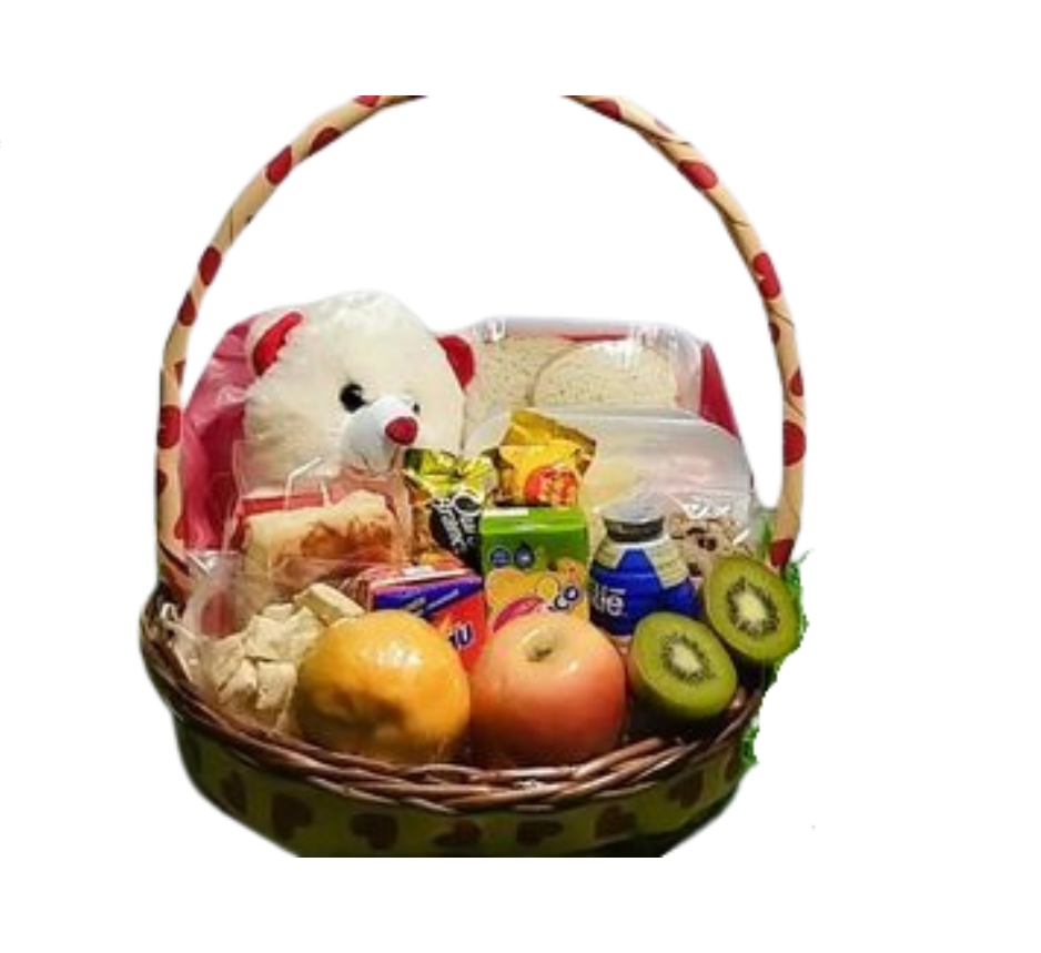 Surpreenda com esta cesta recheada de sabor e carinho! Acompanhada de um adorável urso de pelúcia, é a escolha perfeita para presentear em momentos especiais.