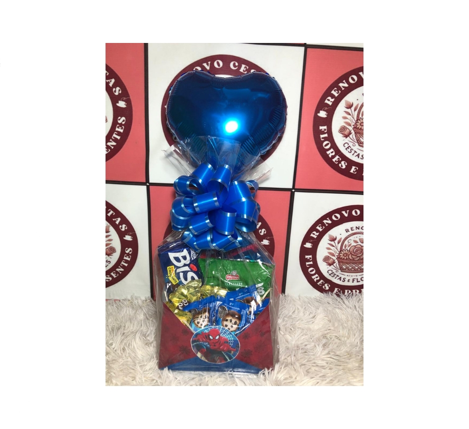 Acompanha 1 caixa de Bis, 1 pacote de Cebolitos, bombons sortidos e uma embalagem temática exclusiva do Homem-Aranha, decorada com muito capricho para encantar desde o primeiro olhar.